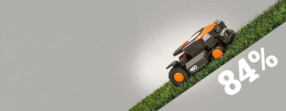 Worx 4WD – arbeitet auch bei Steigungen bis zu 84 %.